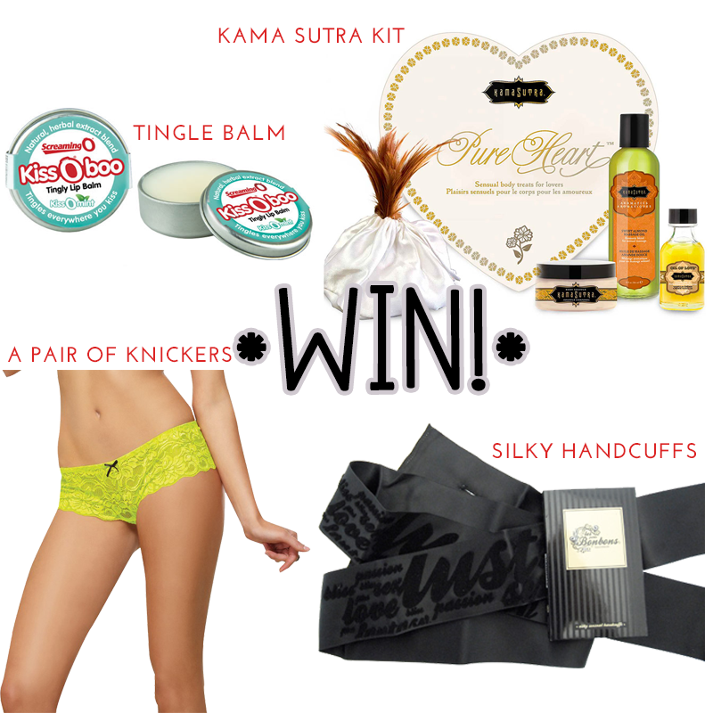 Bouji Lingerie have kindly put together a sensual bundle of items to give away to one reader of my blog. The bundle is made up of: Tingle Balm, Kama Sutra Kit, Knickers & Silky Handcuffs. Hot right?