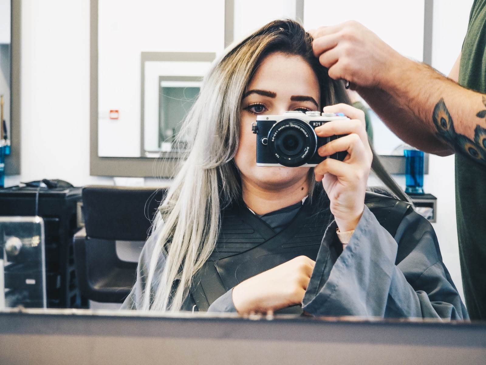 I met with Alasdair; the style director at the salon. I explained to him that I wanted to keep my dark roots, as the upkeep is much better for me and means I don't have to re-do my roots every 6 weeks like I used to. I explained how I wasn't very happy with how warm the regrowth of my roots were starting to go and that to me, they looked very obvious next to the artificial darker colour next to the regrowth. I also explained that I felt the blonde was starting to go very warm toned and I prefer ashier blondes on my hair. He got a colour chart out and we spoke about different shades of grey; eventually deciding on one that would be great for my hair.
