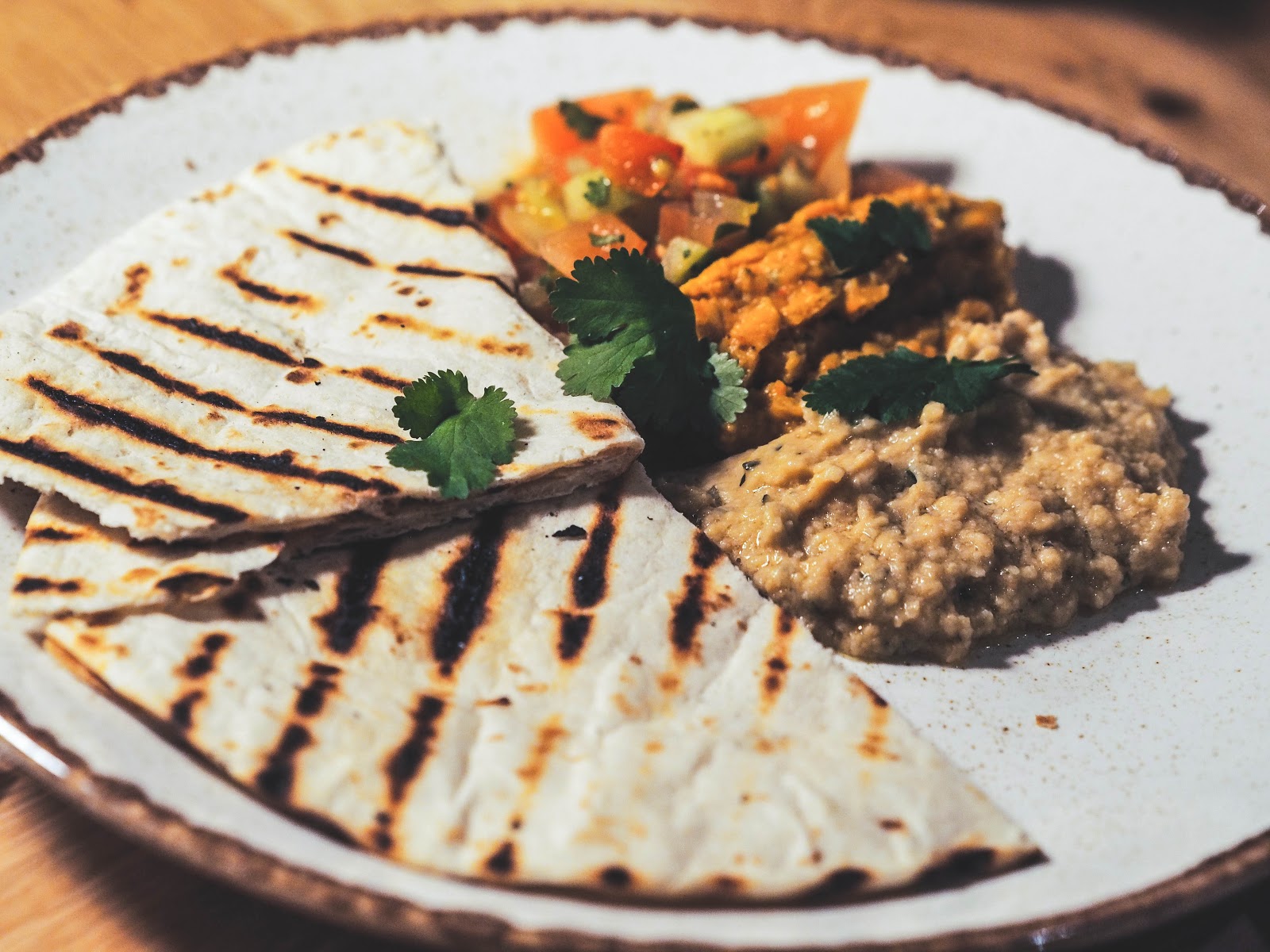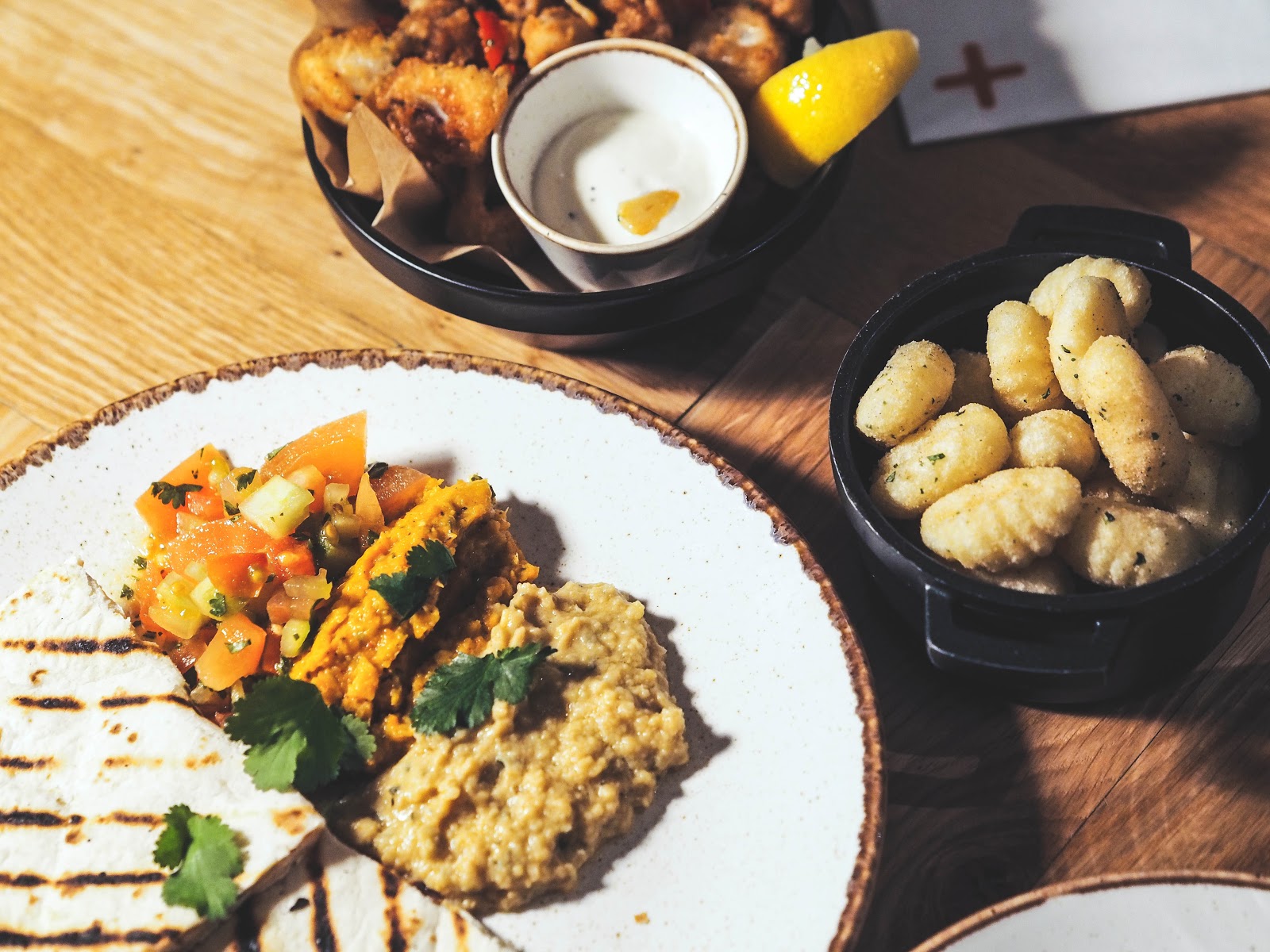 I was also intrigued to try the vegan Trio of Dips (£4.50). I particularly love Moroccan food, so do love these sorts of food. The trio contains a home made houmous, mixed tomato salsa, carrot and harissa and some toasted tortillas. The texture of the houmous was thick and lumpy - almost porridge like. It tasted fresh and was topped off even more with the carrot and harissa dip. You could really taste the coriander and all three dips tasted delicious when dipped into with the toasted tortillas.