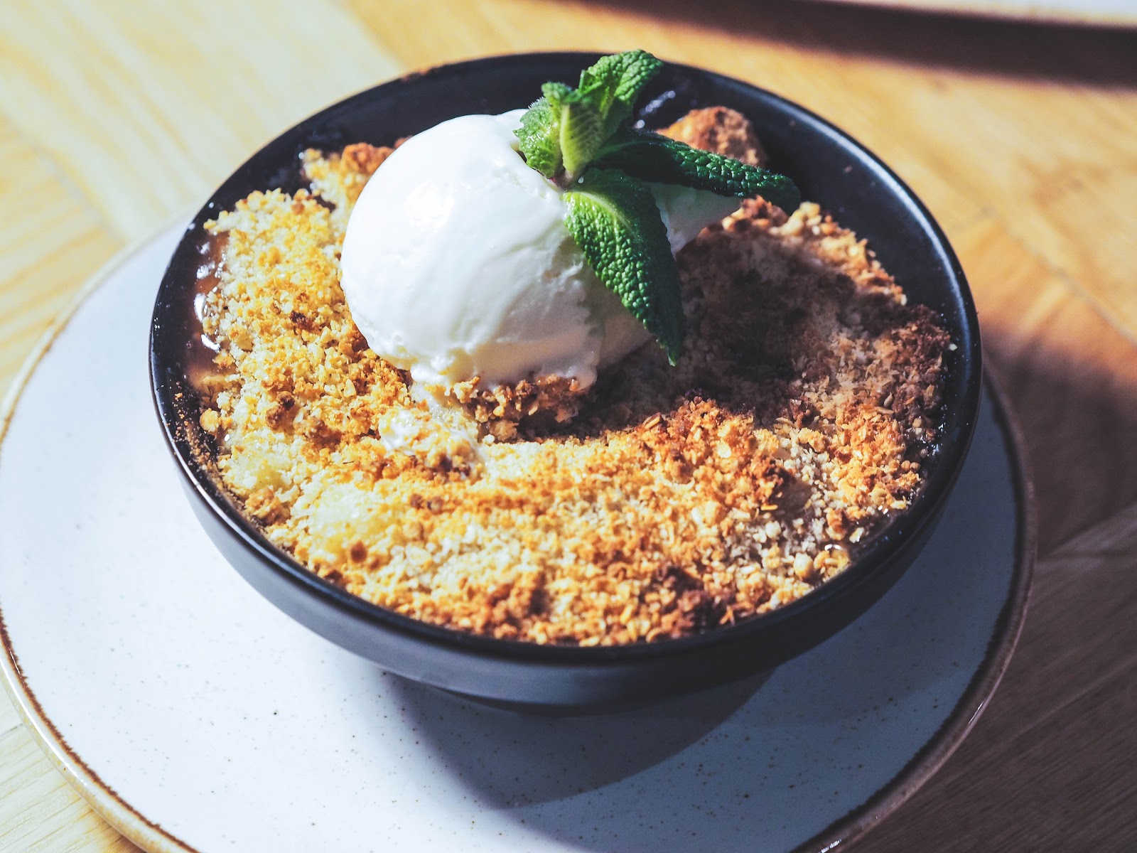 He did offer to check the cheesecake packaging (suggesting it was frozen), so in the end to be on the safe side, I ordered the Salted Toffee Apple Crumble (£5.95), which was served with vanilla ice-cream. This ended up being delicious and I am glad I ordered it over the cheesecake in the end. The crumble was hot and the ice-cream really complimented the toffee apple perfectly.