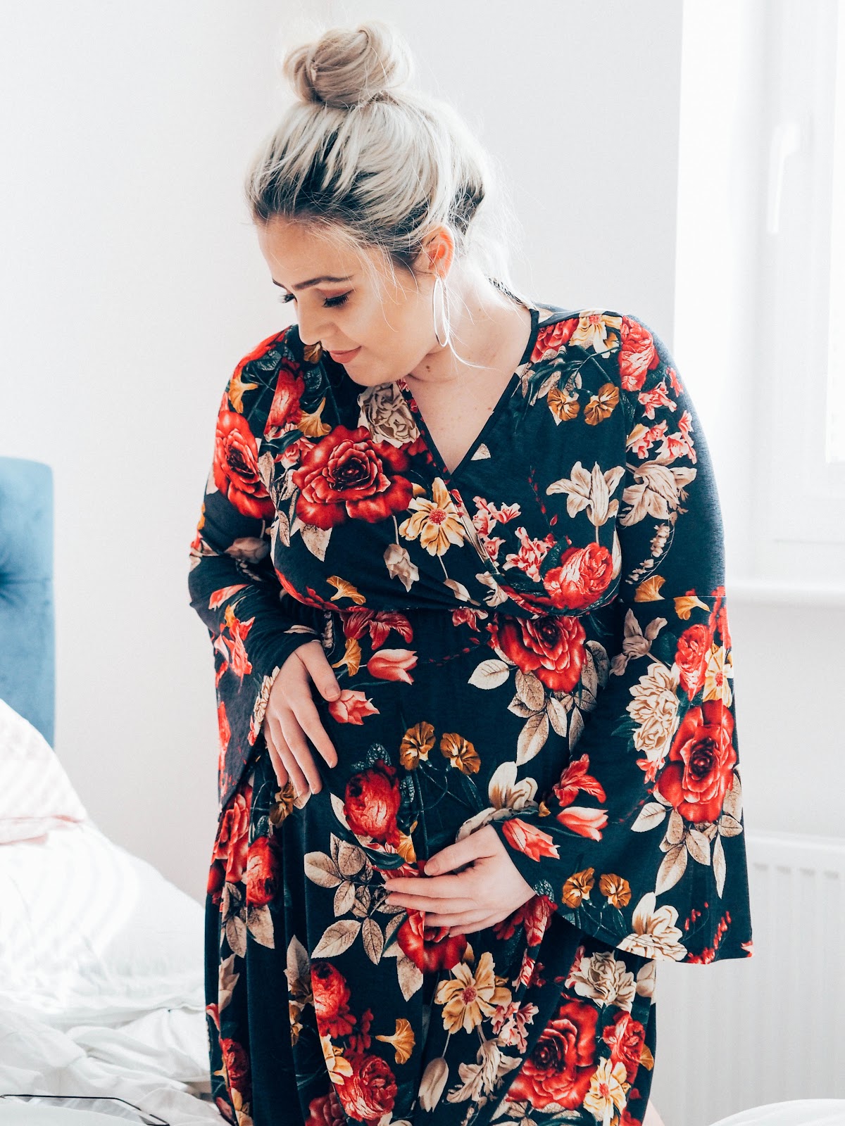 Fortunately, American brands like Pink Blush have a super wide range of maternity clothing for the modern mother; fitting your ever growing bump and making you feel super stylish at the same time. Trying to steer away from my everyday look of leggings and a baggy tee, I looked at their range of maternity dresses and fell in love with the Navy Floral Bell Sleeve Maternity Dress.