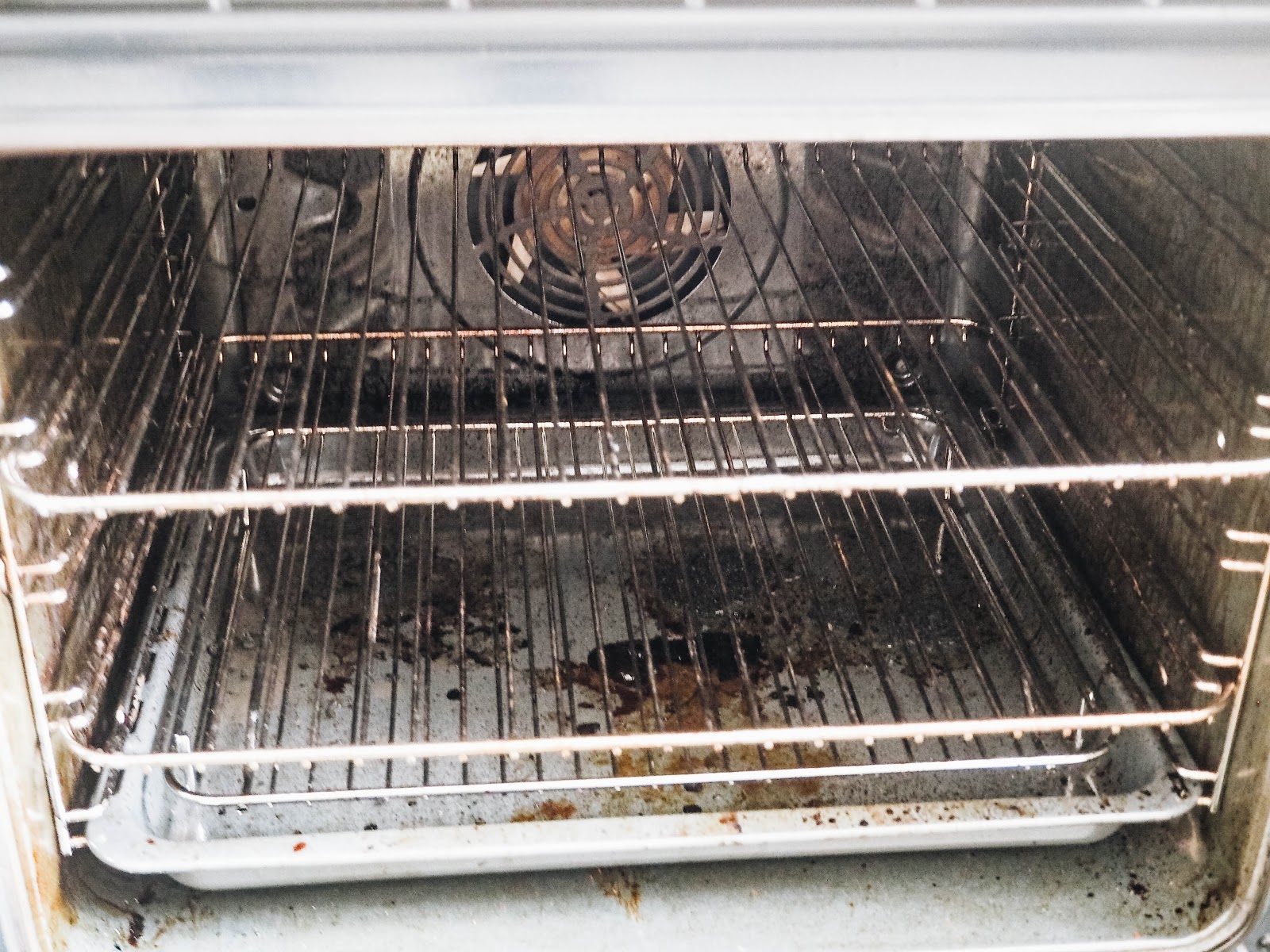 I am embarrassed to share how dirty our oven was before this deep clean, but we do use the oven pretty much 1-2 times per day! Everything needed cleaning; the racks, the base was covered in dry fat and the glass had the annoying brown splash marks that seem to seep inside of the glass, making it really hard to remove yourself.