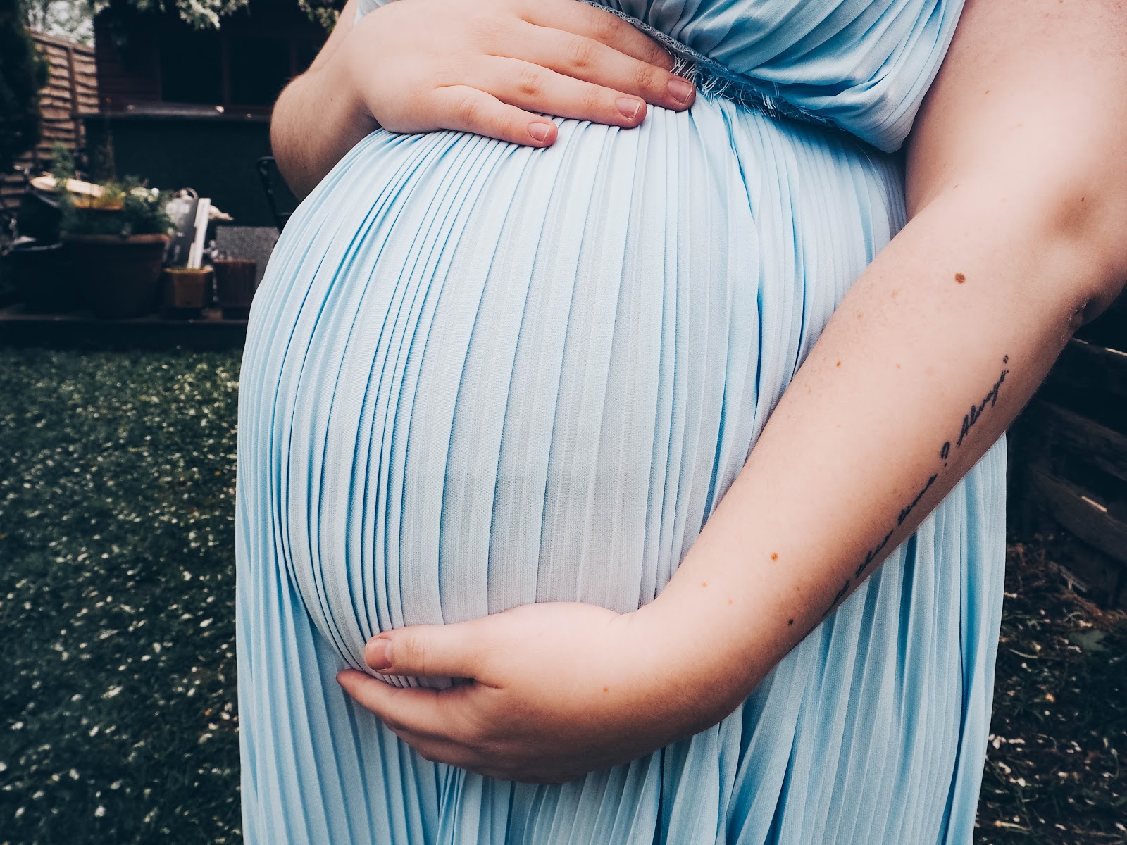 I had no idea what to wear and with very swollen feet and legs, I ended up buying a new pair of flip flops and a maternity dress from ASOS. Baby blue, of course!